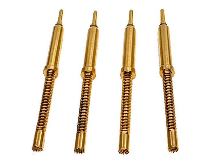 結(jié)構(gòu)設(shè)計(jì)特點(diǎn):大電流場(chǎng)景下,電流產(chǎn)生的電磁力和發(fā)熱可能導(dǎo)致探針變形或接觸松動(dòng),因此結(jié)構(gòu)設(shè)計(jì)需滿(mǎn)足機(jī)械穩(wěn)定性和壓力一致性。探針內(nèi)部通常包含彈簧,如鈹銅彈簧,通過(guò)預(yù)壓縮提供穩(wěn)定的接觸壓力,探針外殼采用高強(qiáng)度材料,如不銹鋼,避免大電流產(chǎn)生的磁流路徑的穩(wěn)定性。