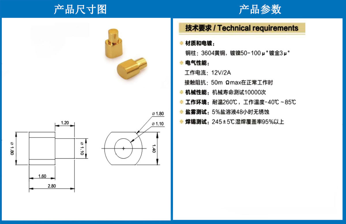 產(chǎn)品型號(hào):1.8*2.8銅柱