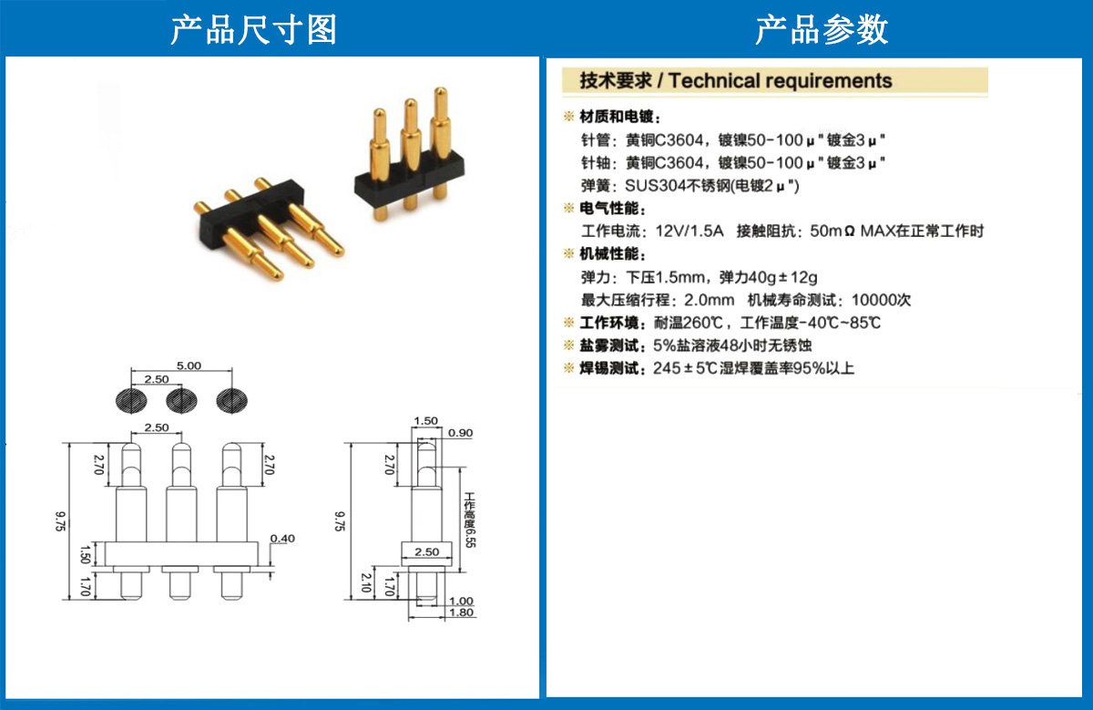 產品型號:3P-2.5PH-1.8*9.75彈針