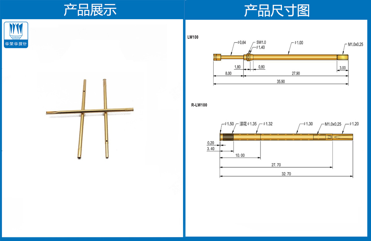 產品簡介:R-LW100線束針套,1.30mm測試針套、總長32.70mm、彈簧針、頂針、探針