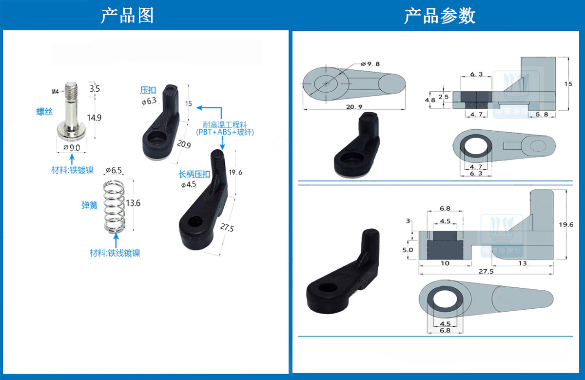 長柄壓扣:總長:27.5mm,高:19.6mm,直徑:4.5mm